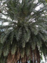 English: Queen palm, Butia palm, Cocos palm, Feathery coconut, Giriba palm.
