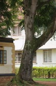 An unarmed forest tree, usually about 20 m (9-30 m) m, the trunk often wavy, short with large branches to a spreading crown, rounded and dense. Buttresses usually absent or short and blunt, the trunk spread out at the base.