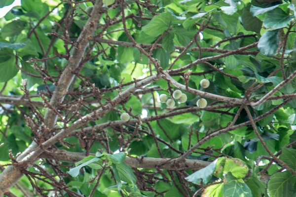 FLOWERS: inflorescence a fig, consisting of an urn-shaped receptacle with a narrow apical opening, the flowers enclosed within, figs solitary or in pairs in the leaf axils or just below, almost sessile.