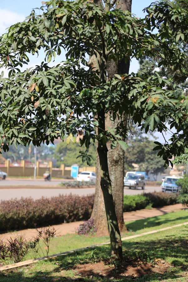 Saba nut is native to Brazil. Sporadically grown throughout the tropics and subtropics, and used as a house plant in temperate regions. In Kampala, this tree can be found along Lugogo bypass, Jinja road among other places.