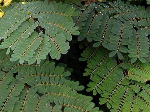 LEAVES: feathery, compound to 50 cm long with hooked prickles along the leaf stalk.